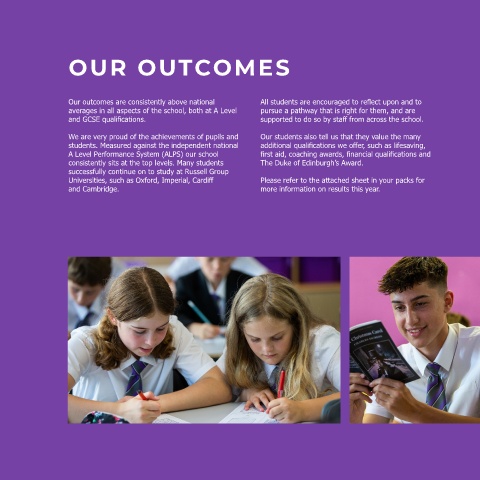 Our outcomes are consistently above national All students are encouraged to reflect upon and to