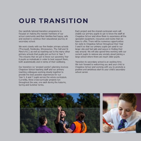 Our transition (or ‘prosiect pontio’) planning involves Chepstow School and working with you to promote a